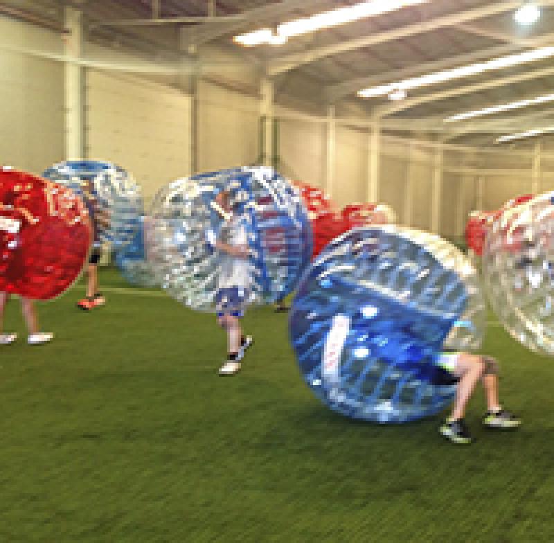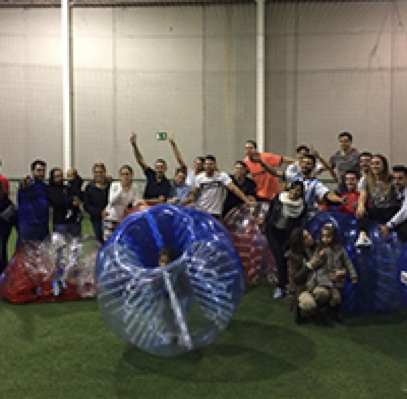 FRESH Despedidas te ofrece practicar un deporte como jugar al fútbol… pero encerrado en una esfera de plástico inflada que cubre la parte superior del cuerpo y la cabeza del jugador.